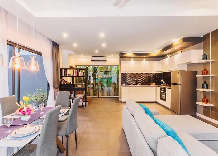 Вилла 2 Bedroom Pool Villa In Rawai расположена 41 минутах езды от аэропорта "Пхукета" и предлагает патио с видом на сад. Здесь гостей ожидают 2 ванные комнаты, 2 спальни и оснащённая всем необходимым кухня.